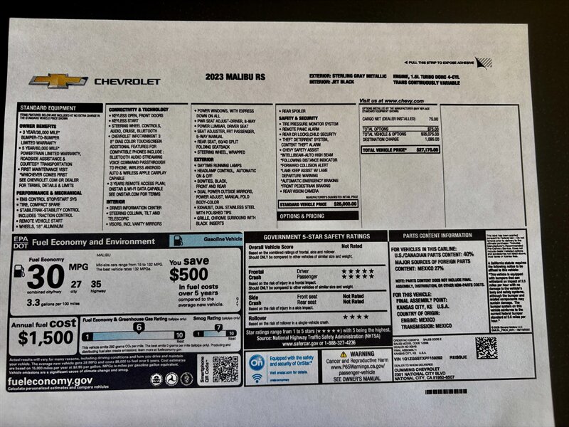 This is the "RS" version of the Malibu. This was a 1-owner personal lease vehicle the was driven and maintained in Southern California. No accidents or smoking.